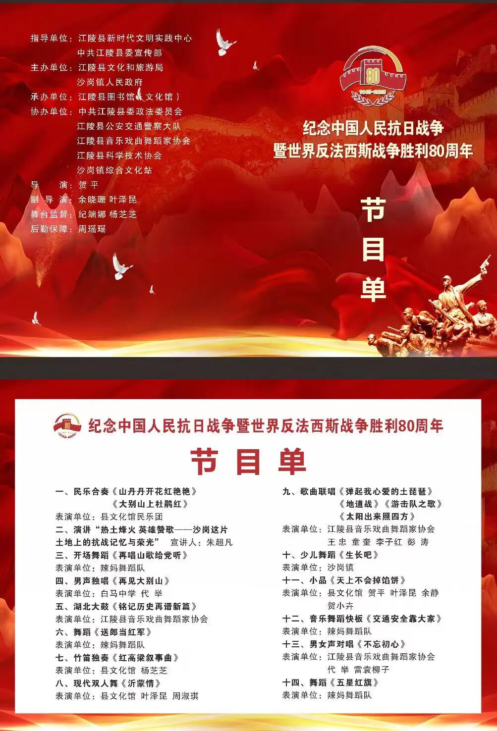 【江陵文艺】纪念抗战胜利80周年文艺演出在沙岗镇成功举办,红色情怀燃动全场!